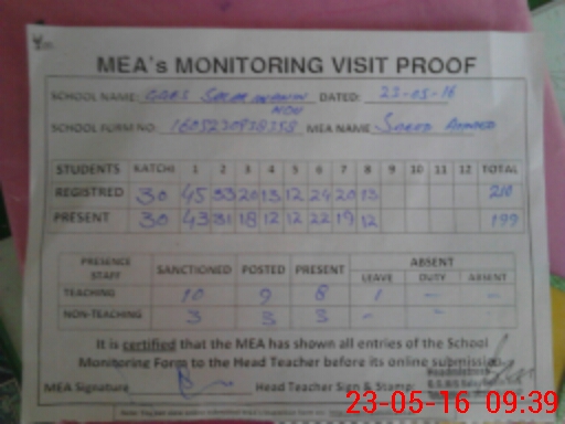 | Certified that this School was Inspected by the Undersigned MEA/DMO Today and the Information Stated Above is as Per Record. | |||||