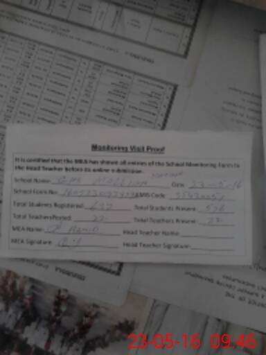 | Attendance Register | Head Teacher | MEA with School | Visit Proof |