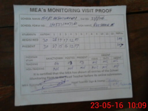 | Attendance Register | Head Teacher | MEA with School | Visit Proof |