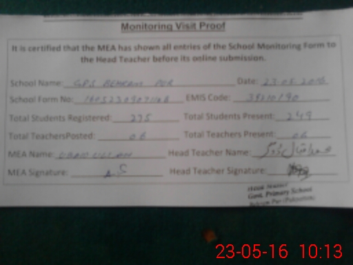 | EMIS Code: 39210190 | Name of School: GPS BEHRAM PUR PO PAKPATTAN | |||