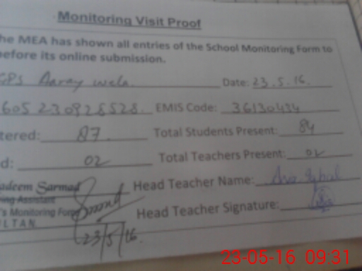 | EMIS Code: 36130434 | Name of School: GGPS AARAY WALA MUZA JHOK LASHAKAR PUR | |||