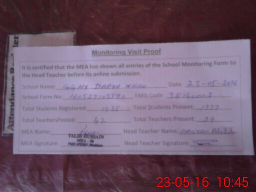 | Certified that this School was Inspected by the Undersigned MEA/DMO Today and the Information Stated Above is as Per Record. | |||||
