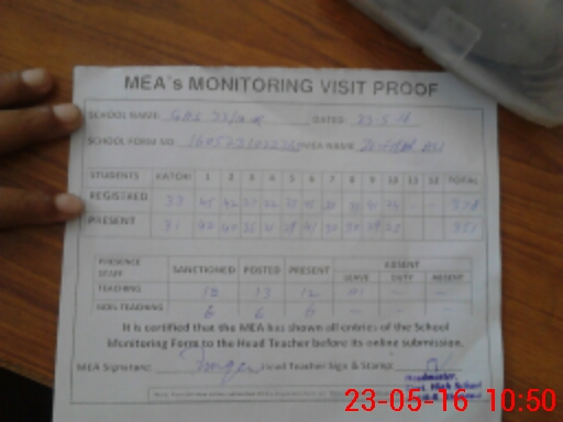 | Attendance Register | Head Teacher | MEA with School | Visit Proof |