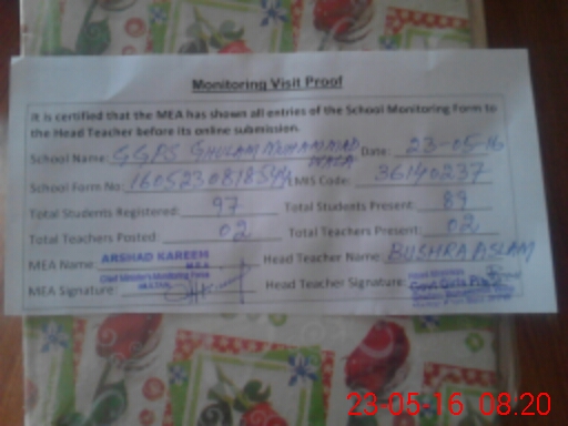 | EMIS Code: 36140237 | Name of School: GGPS GHULAM MOHAMMAD WALA | |||