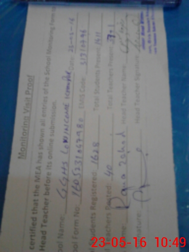 | Certified that this School was Inspected by the Undersigned MEA/DMO Today and the Information Stated Above is as Per Record. | |||||