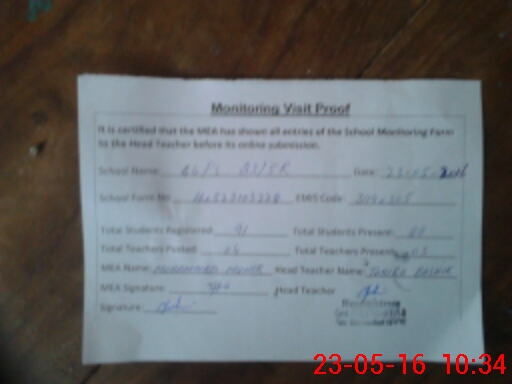 | Attendance Register | Head Teacher | MEA with School | Visit Proof |