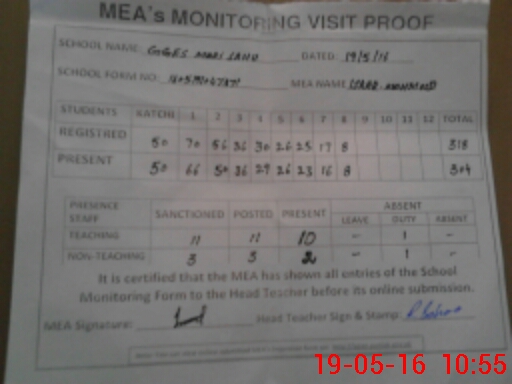 | Attendance Register | Head Teacher | MEA with School | Visit Proof |