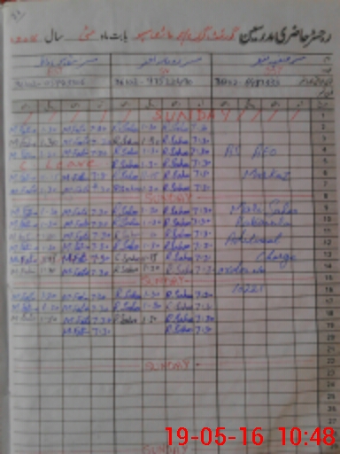 | CNIC | Full Name | Designation | R/C | Absence During Last Calender Month |