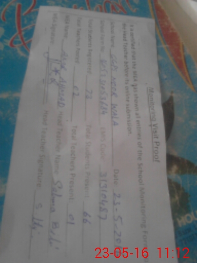 | EMIS Code: 31310487 | Name of School: GGPS NOOR WALA | |||