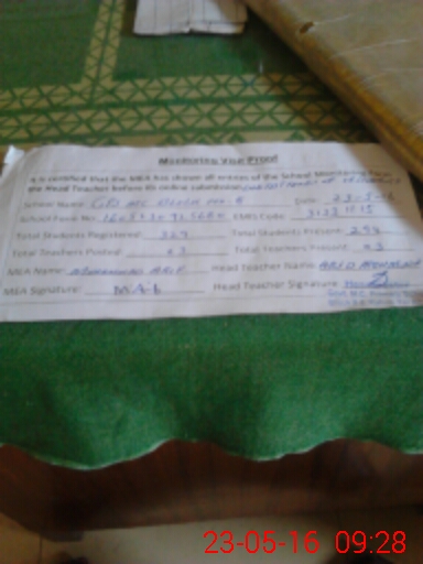 | EMIS Code: 31331115 | Name of School: GPS MC BLOCK NO. 8 THALI ROAD | |||
