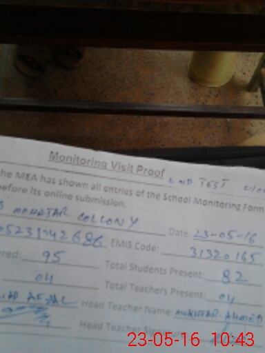 | EMIS Code: 31320165 | Name of School: GPS MAHAJAR COLONY ALLAH ABAD | |||