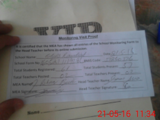 | Attendance Register | Head Teacher | MEA with School | Visit Proof |