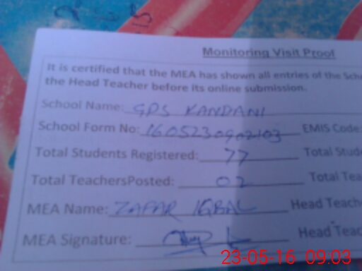 | EMIS Code: 38110285 | Name of School: GPS KANDANI | |||