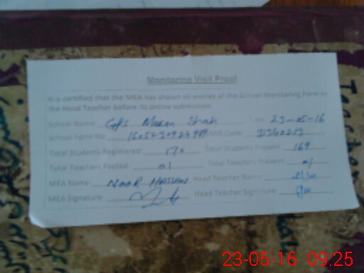 | Certified that this School was Inspected by the Undersigned MEA/DMO Today and the Information Stated Above is as Per Record. | |||||