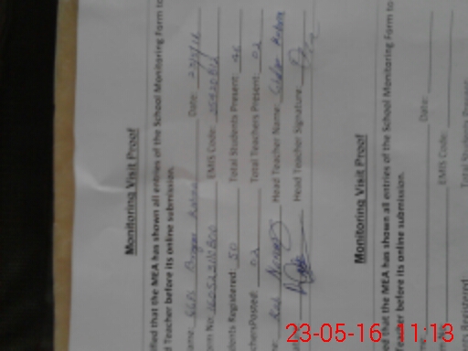 | Attendance Register | Head Teacher | MEA with School | Visit Proof |