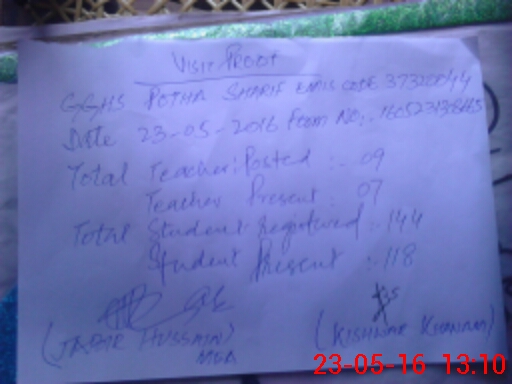 | EMIS Code: 37320044 | Name of School: GGHS POTHA SHARIF | |||