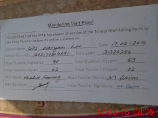 | EMIS Code: 31320294 | Name of School: GPS WARYAM LAR | |||