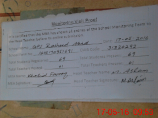 | EMIS Code: 31320292 | Name of School: GPS RASHEED ABAD | |||