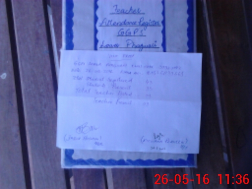 | Total no. of Classrooms: 3 No. of Classrooms Used for Teaching: 1 No. of Classrooms Storing Old Furniture, FTBs, etc: 2Comments if Any: Two rooms in dangerous during rainy season 2016 With sliding |