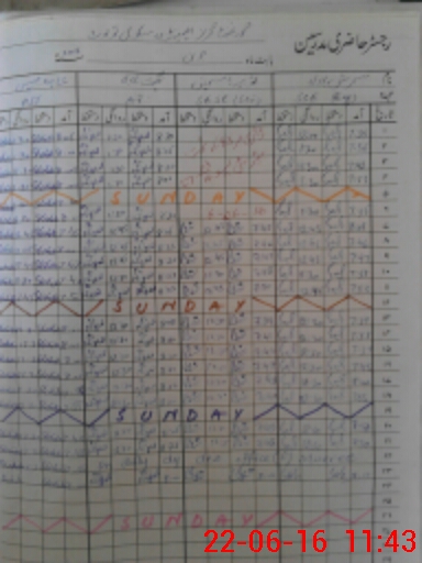 | CNIC | Full Name | Designation | R/C | Absence During Last Calender Month |