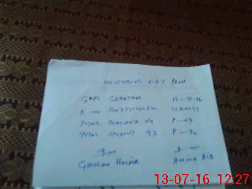 | Monitoring Date: 13-07-2016 | Start Time: 13-07-2016 12:13 PM | End Time: 13-07-2016 12:28 PM | Name of MEA: Gh**** Ha**** | |