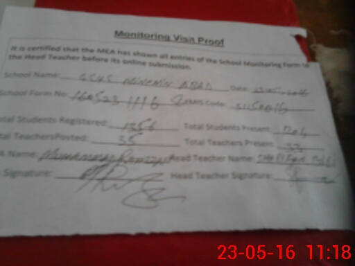 | Certified that this School was Inspected by the Undersigned MEA/DMO Today and the Information Stated Above is as Per Record. | |||||