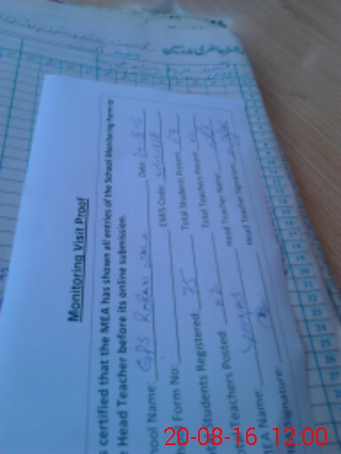 | Attendance Register | Head Teacher | MEA with School | Visit Proof |