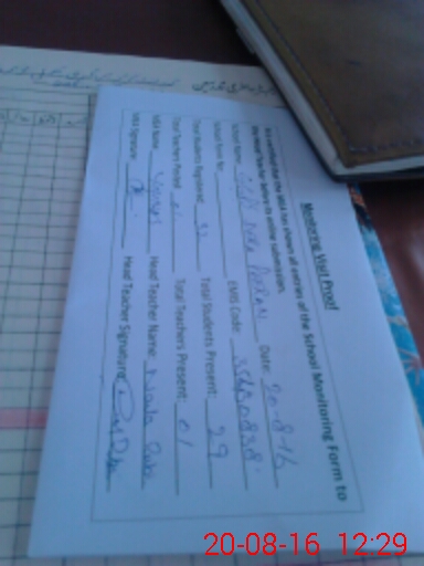 | Attendance Register | Head Teacher | MEA with School | Visit Proof |