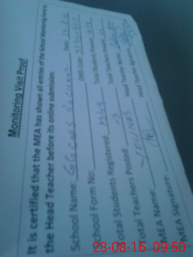 | Attendance Register | Head Teacher | MEA with School | Visit Proof |