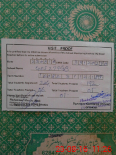 | Certified that this School was Inspected by the Undersigned MEA/DMO Today and the Information Stated Above is as Per Record. | |||||