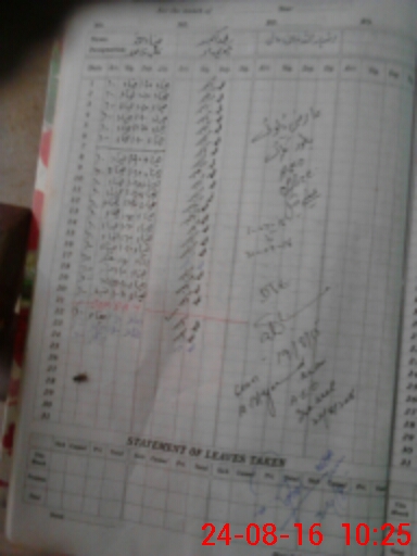 | CNIC | Full Name | Designation | R/C | Absence During Last Calender Month |