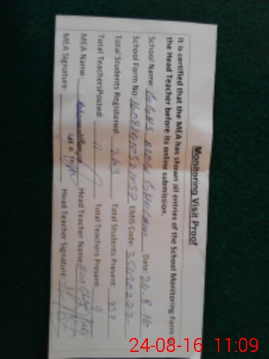 | Certified that this School was Inspected by the Undersigned MEA/DMO Today and the Information Stated Above is as Per Record. | |||||