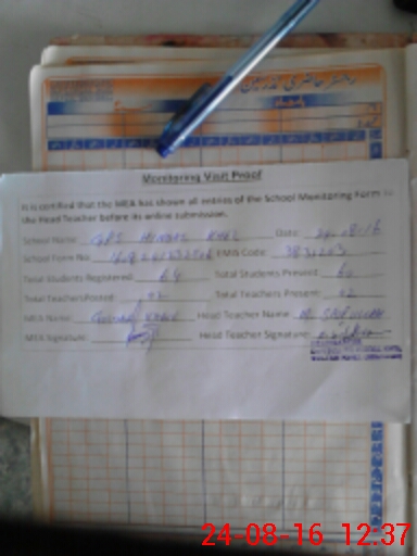 | Attendance Register | Head Teacher | MEA with School | Visit Proof |