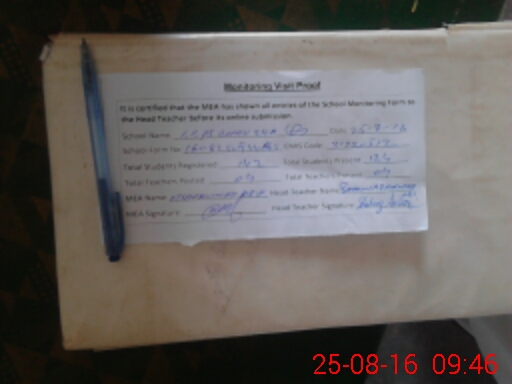 | Attendance Register | Head Teacher | MEA with School | Visit Proof |