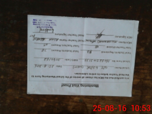 | Monitoring Date: 25-08-2016 | Start Time: 25-08-2016 09:58 AM | End Time: 25-08-2016 10:59 AM | Name of MEA: Mu**** Am**** BN**** 04 | |