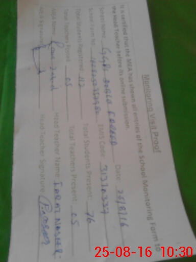 | Certified that this School was Inspected by the Undersigned MEA/DMO Today and the Information Stated Above is as Per Record. | |||||