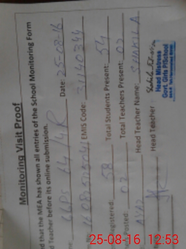 | Attendance Register | Head Teacher | MEA with School | Visit Proof |