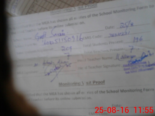 | Certified that this School was Inspected by the Undersigned MEA/DMO Today and the Information Stated Above is as Per Record. | |||||