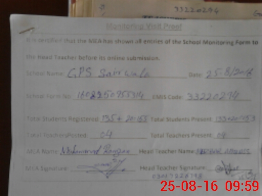 | EMIS Code: 33220294 | Name of School: GPS SAIR WALA | |||