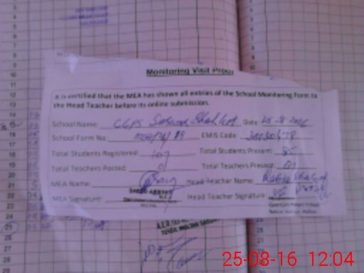 | Attendance Register | Head Teacher | MEA with School | Visit Proof |