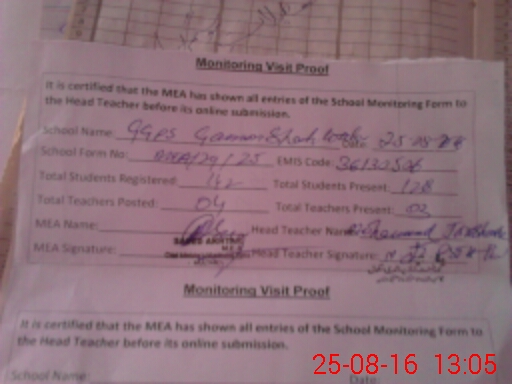 | EMIS Code: 36130506 | Name of School: GGPS GAMON SHAH WALA | |||