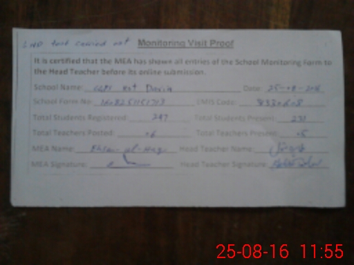 | Certified that this School was Inspected by the Undersigned MEA/DMO Today and the Information Stated Above is as Per Record. | |||||