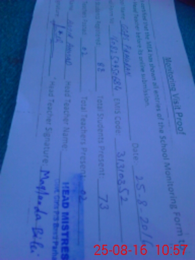 | Attendance Register | Head Teacher | MEA with School | Visit Proof |