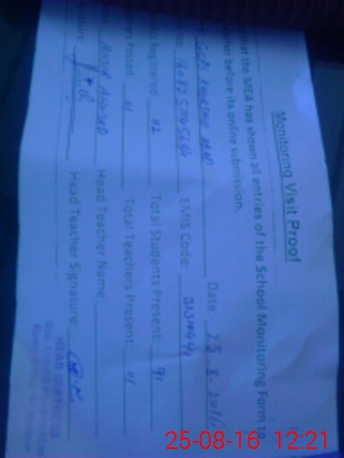 | Attendance Register | Head Teacher | MEA with School | Visit Proof |