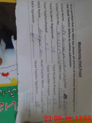 | Attendance Register | Head Teacher | MEA with School | Visit Proof |