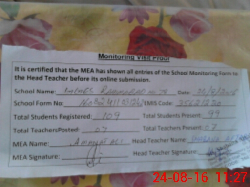 | Certified that this School was Inspected by the Undersigned MEA/DMO Today and the Information Stated Above is as Per Record. | |||||