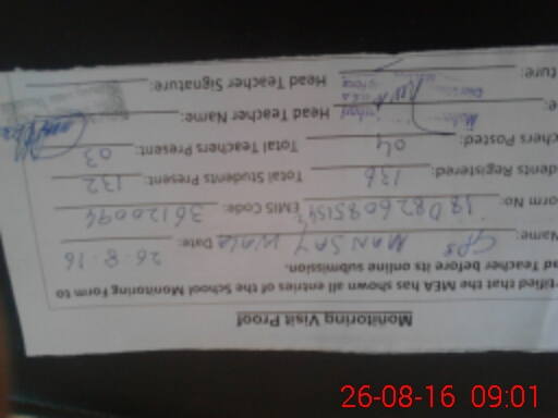 | Attendance Register | Head Teacher | MEA with School | Visit Proof |