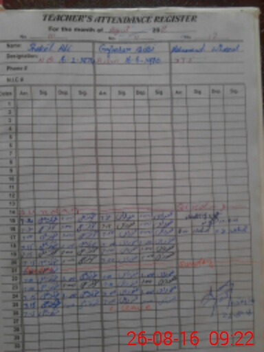 | CNIC | Full Name | Designation | R/C | Absence During Last Calender Month |