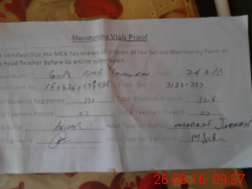 | Certified that this School was Inspected by the Undersigned MEA/DMO Today and the Information Stated Above is as Per Record. | |||||