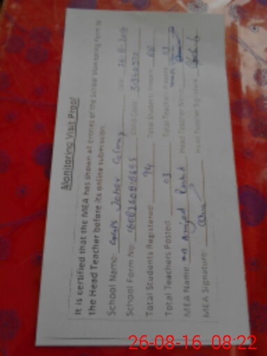 | Attendance Register | Head Teacher | MEA with School | Visit Proof |